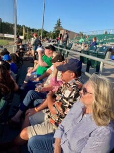 A nice turnout for the baseball game last Thursday, June 16th. Fellowship, baseball, hot dogs, beverages and great weather, plus a Medford Rogues win over the San Francisco Sea Gulls 6-2., resulted in a perfect night.