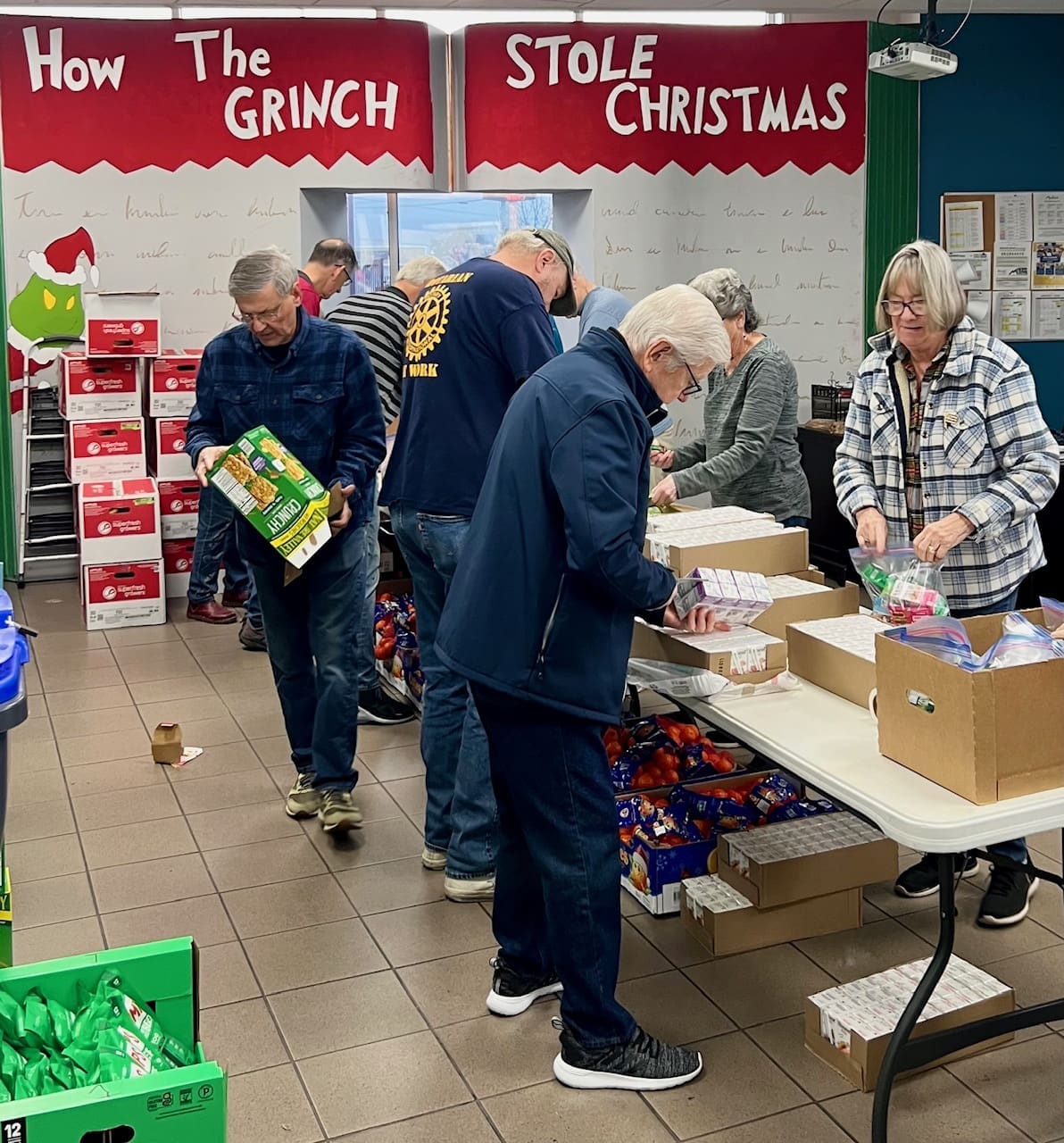What do you get when you combine 485 jars of peanut butter and 485 bags of groceries with 14 Rotarians the day before holiday break at Kid’s Unlimited? If you…